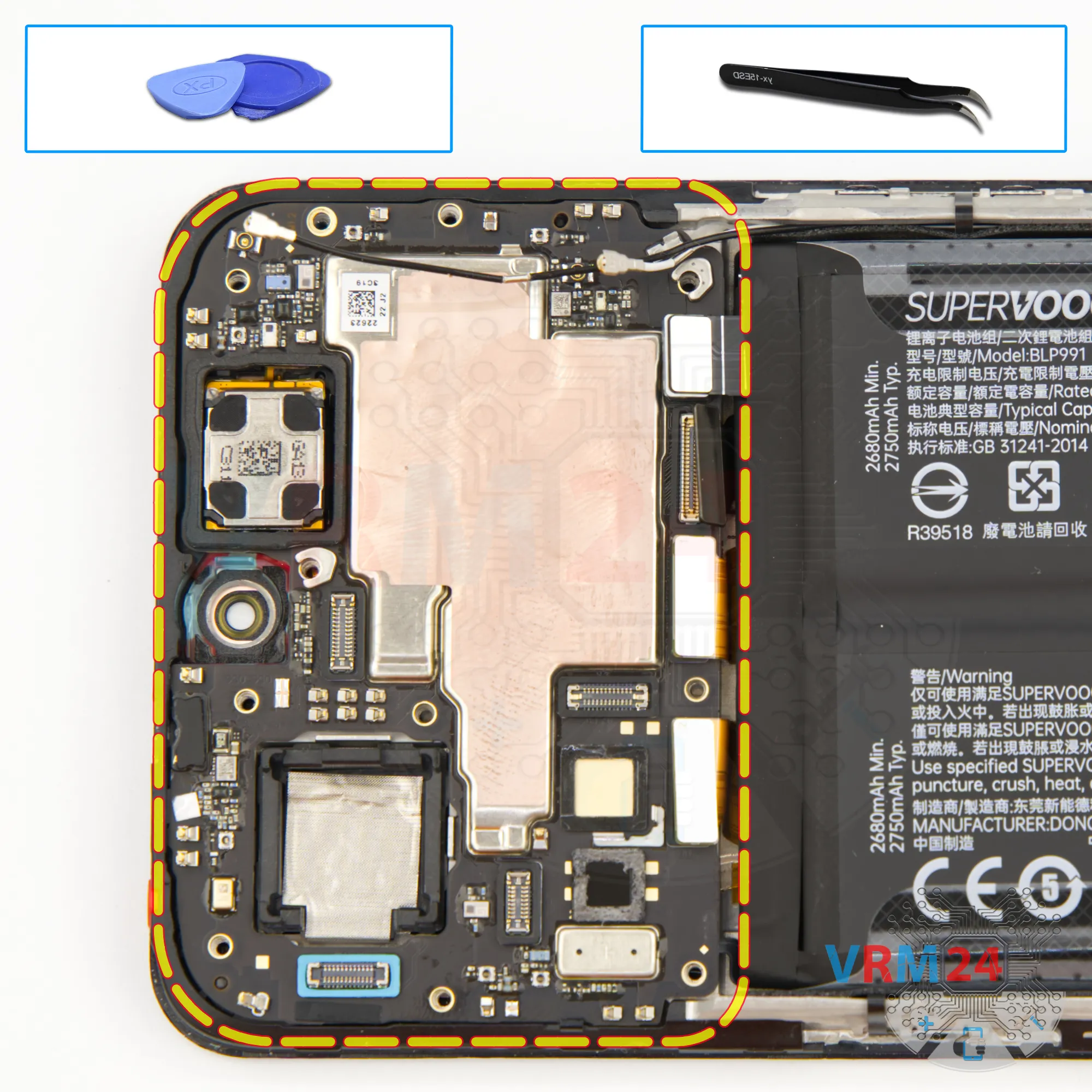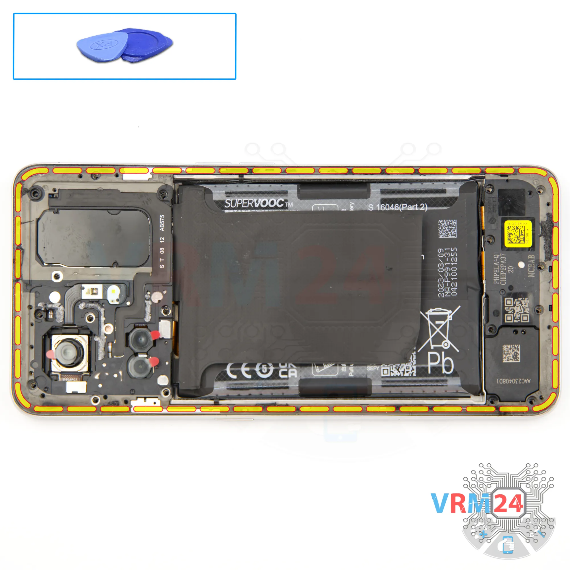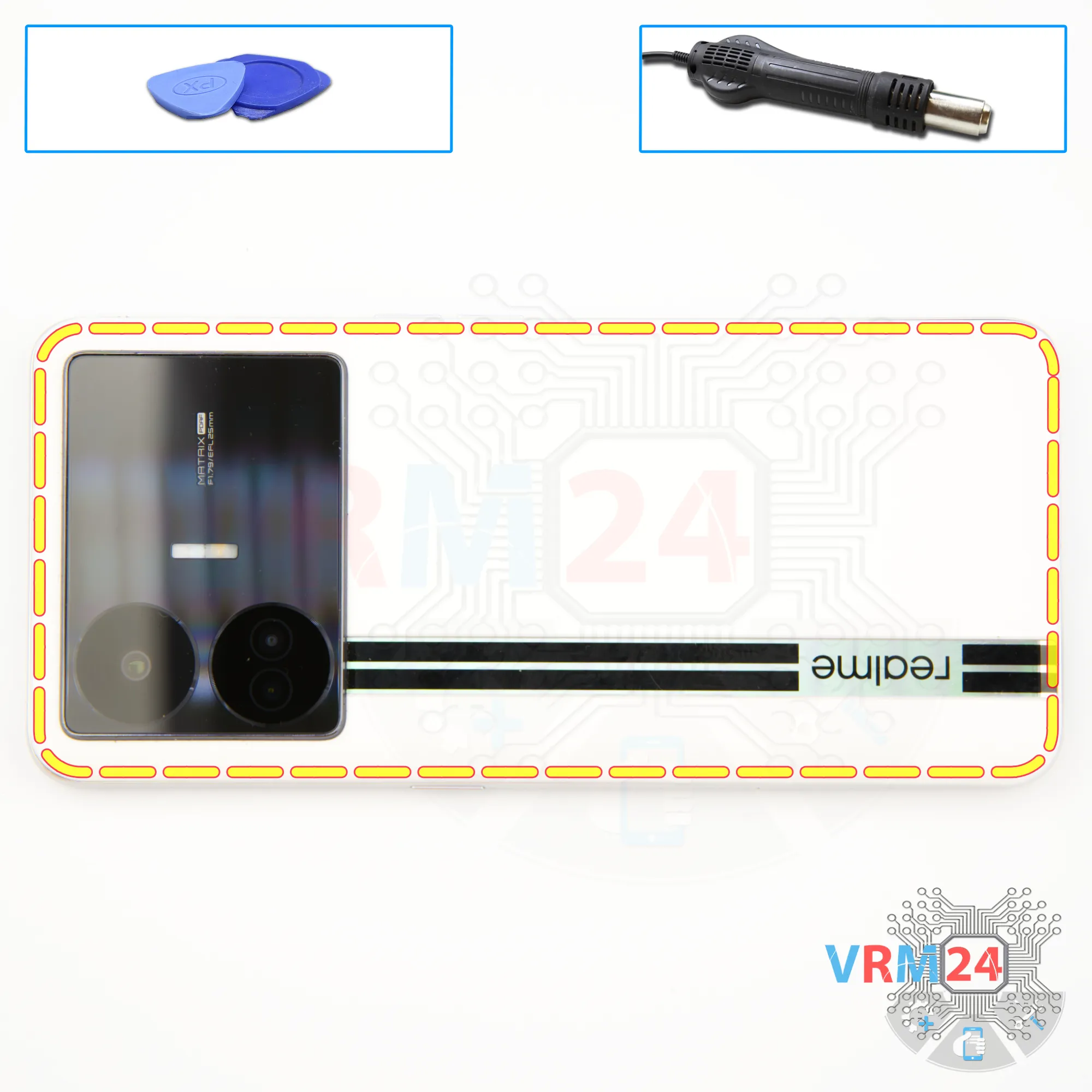 Disassembly/Repair of the mobile device Realme GT Neo 5 SE (Realme GT Neo 5 SE RMX3701) with each step description and the required set of tools.