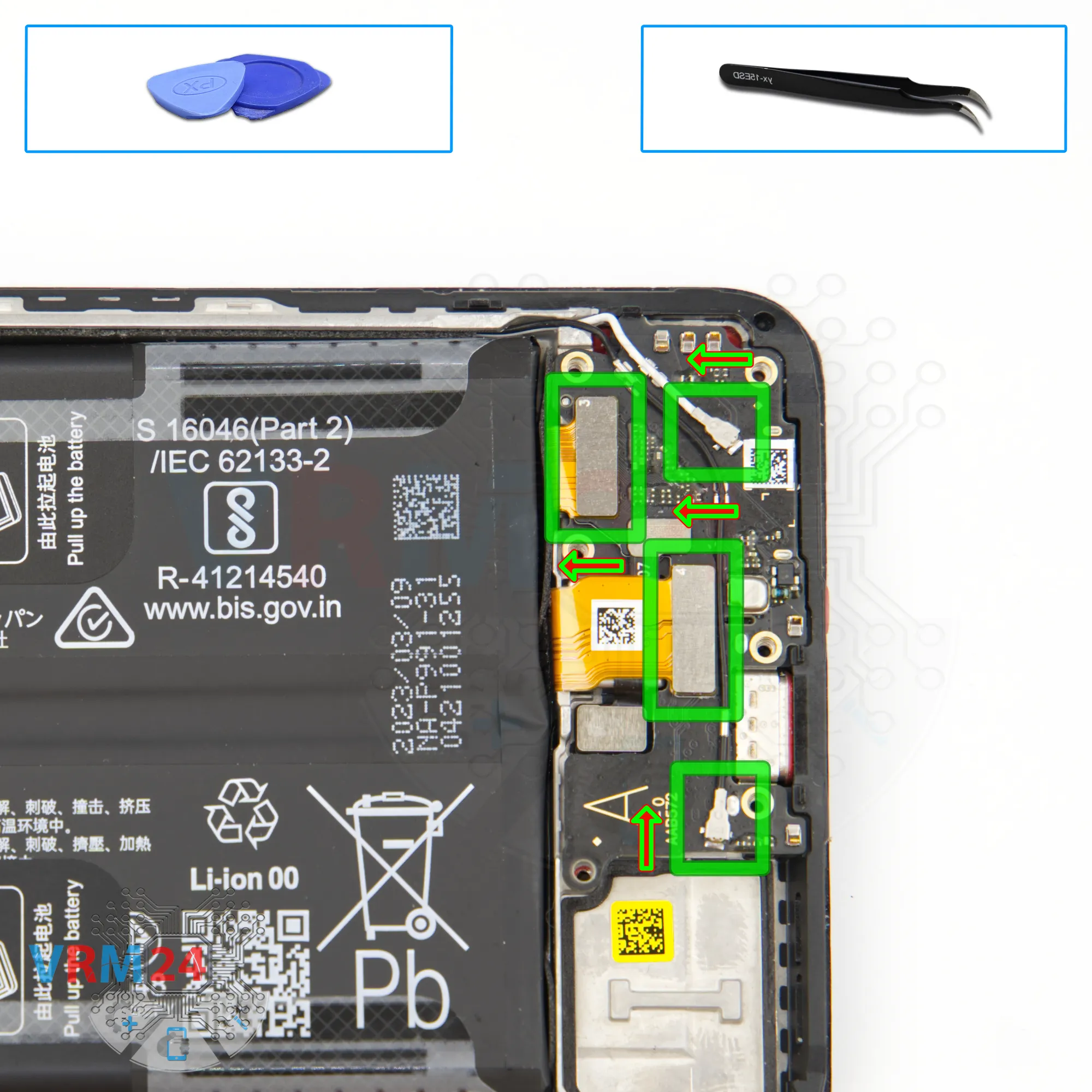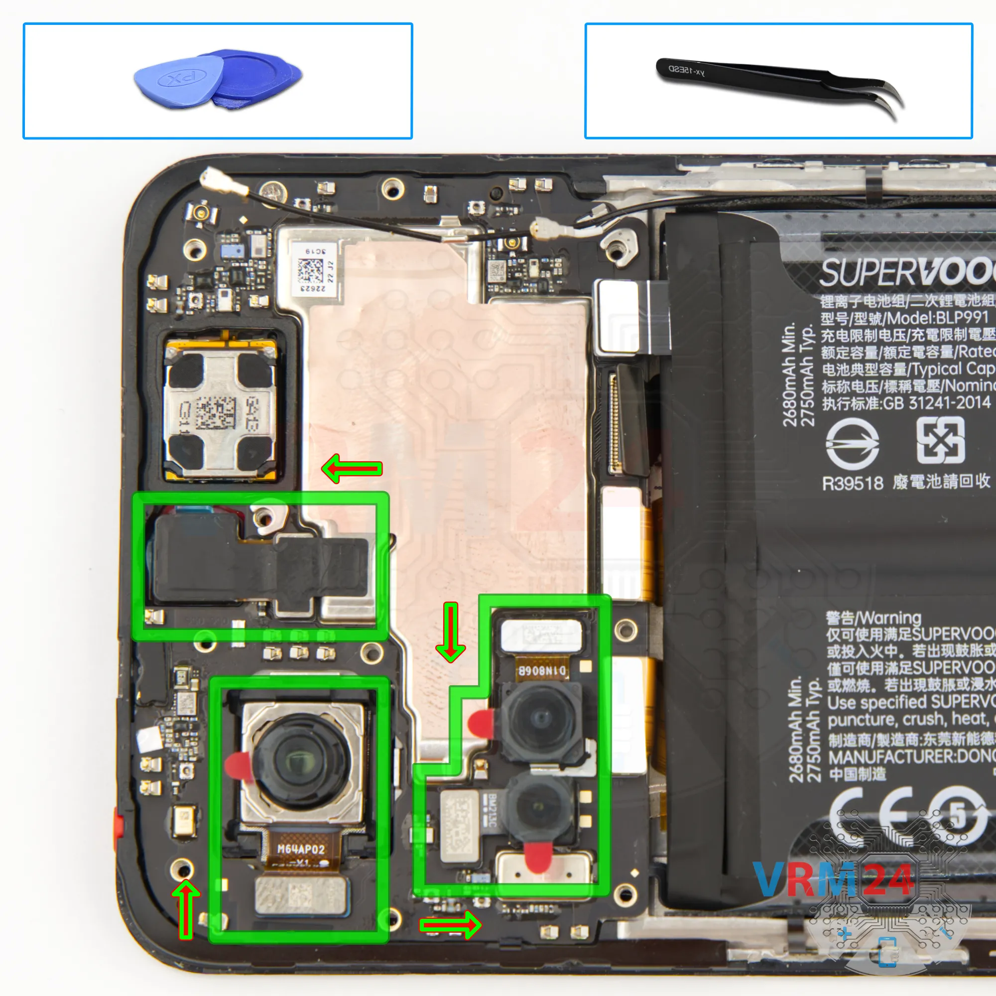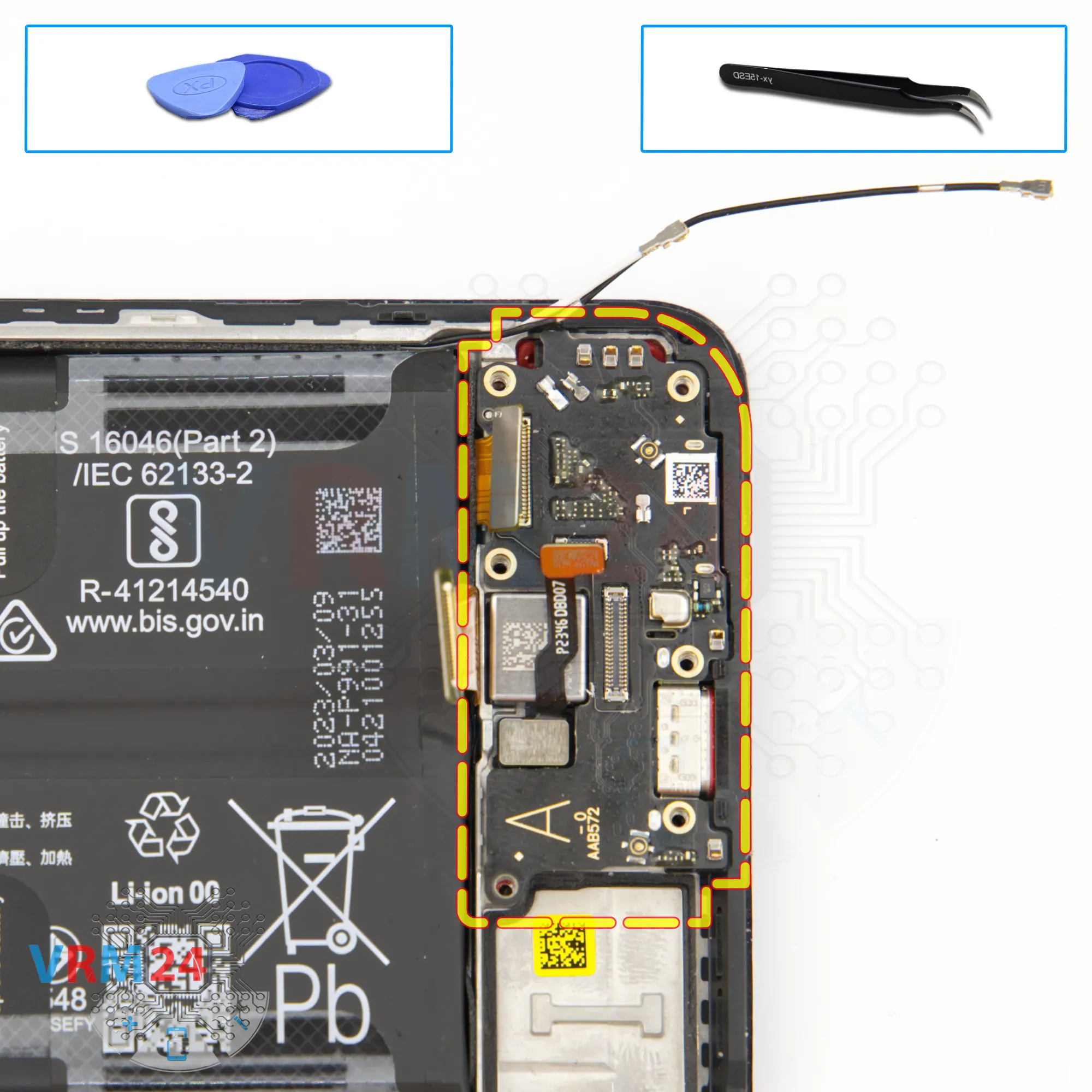 Disassembly/Repair of the mobile device Realme GT Neo 5 SE (Realme GT Neo 5 SE RMX3701) with each step description and the required set of tools.
