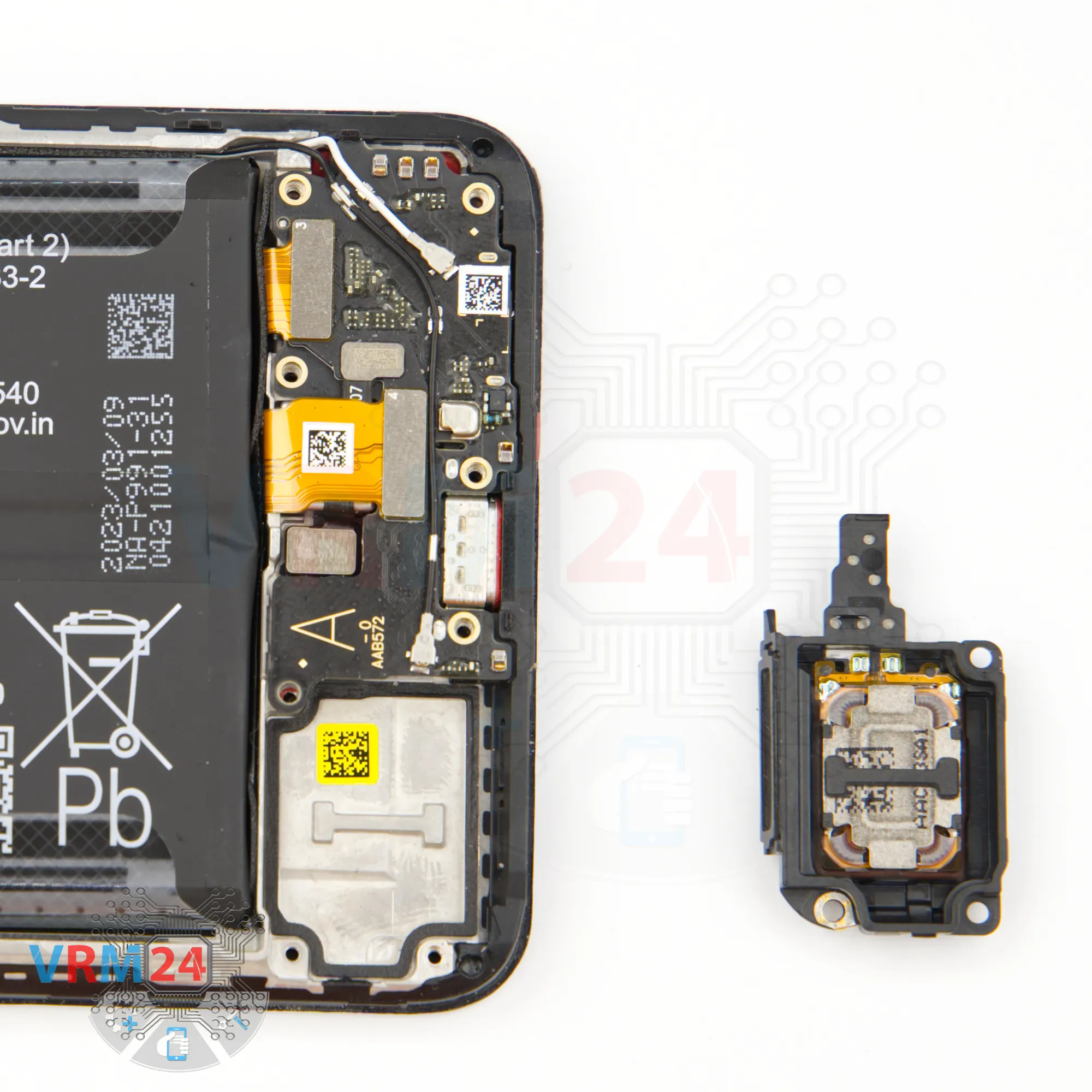 âšī¸ī¸ In the display frame remained: the earpiece speaker, battery, fingerprint sensor, and vibration motor.